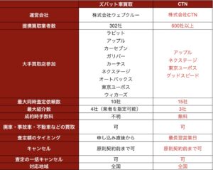 CTN ズバッと車買取 比較表